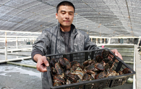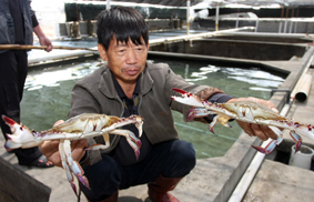 图为品种改良后的螃蟹、鲍鱼,具有个大质优的特点